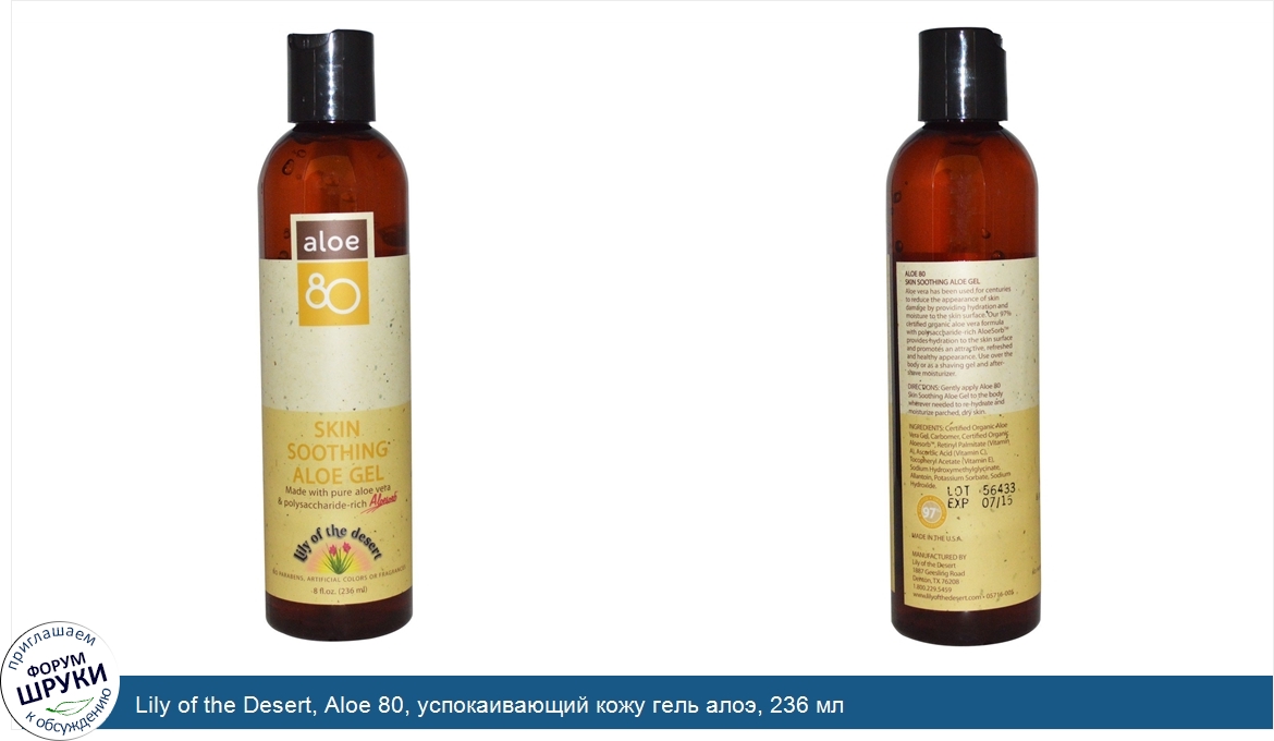 ru Lily of the Desert, Aloe 80, успокаивающий кожу гель алоэ, 236 мл