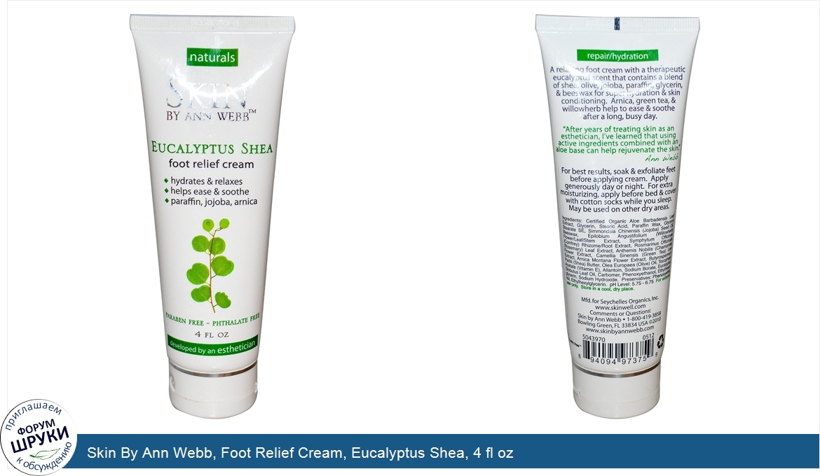 Друзья, если у вас есть отзыв/дополнение/комментарий/вопрос относительно Skin By Ann Webb, Foot Relief Cream, Eucalyptus Shea, 4 fl oz - напишите его ответом в эту тему (это будет полезно всему сообществу в целом и вам в отдельности).