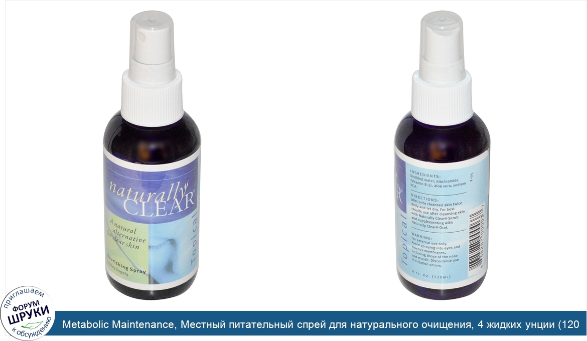 Друзья, если у вас есть отзыв/дополнение/комментарий/вопрос относительно Metabolic Maintenance, Местный питательный спрей для натурального очищения, 4 жидких унции (120 мл) - напишите его ответом в эту тему (это будет полезно всему сообществу в целом и вам в отдельности).