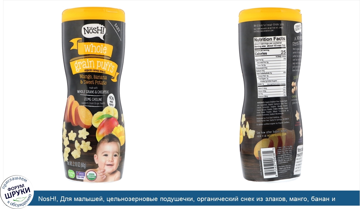 Друзья, если у вас есть отзыв/дополнение/комментарий/вопрос относительно NosH!, Для малышей, цельнозерновые подушечки, органический снек из злаков, манго, банан и батат, 60г - напишите его ответом в эту тему (это будет полезно всему сообществу в целом и вам в отдельности).
