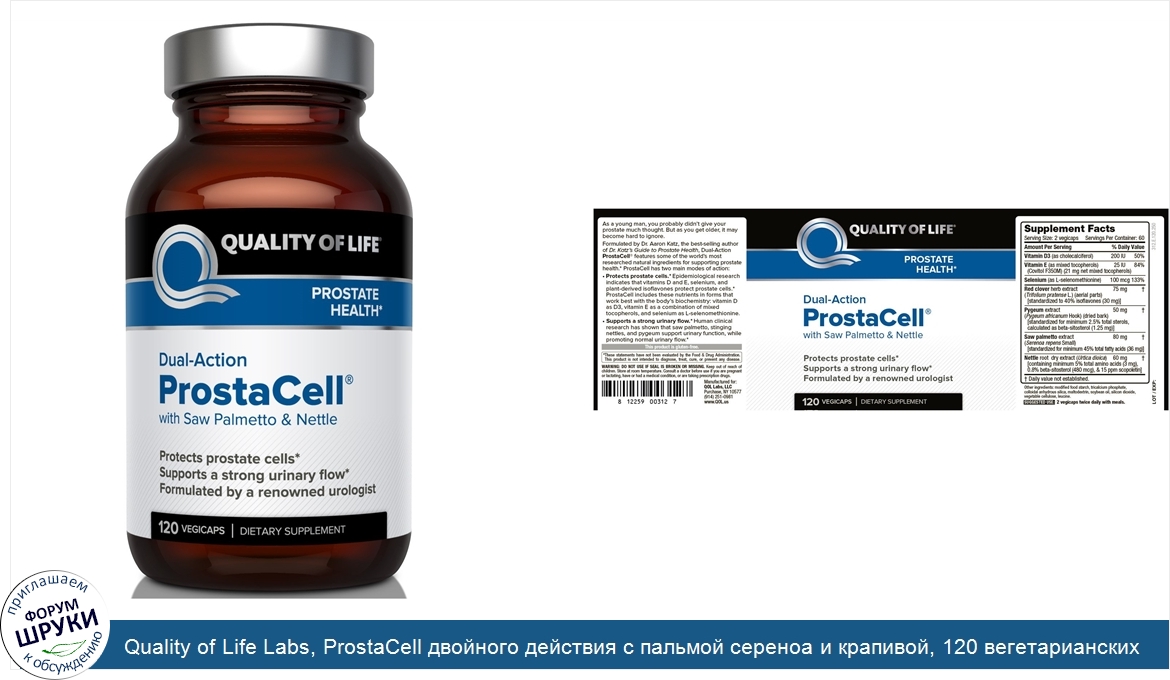Друзья, если у вас есть отзыв/дополнение/комментарий/вопрос относительно Quality of Life Labs, ProstaCell двойного действия с пальмой сереноа и крапивой, 120 вегетарианских капсул - напишите его ответом в эту тему (это будет полезно всему сообществу в целом и вам в отдельности).