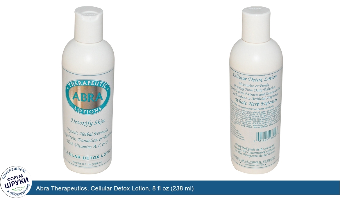 Друзья, если у вас есть отзыв/дополнение/комментарий/вопрос относительно Abra Therapeutics, Cellular Detox Lotion, 8 fl oz (238 ml) - напишите его ответом в эту тему (это будет полезно всему сообществу в целом и вам в отдельности).