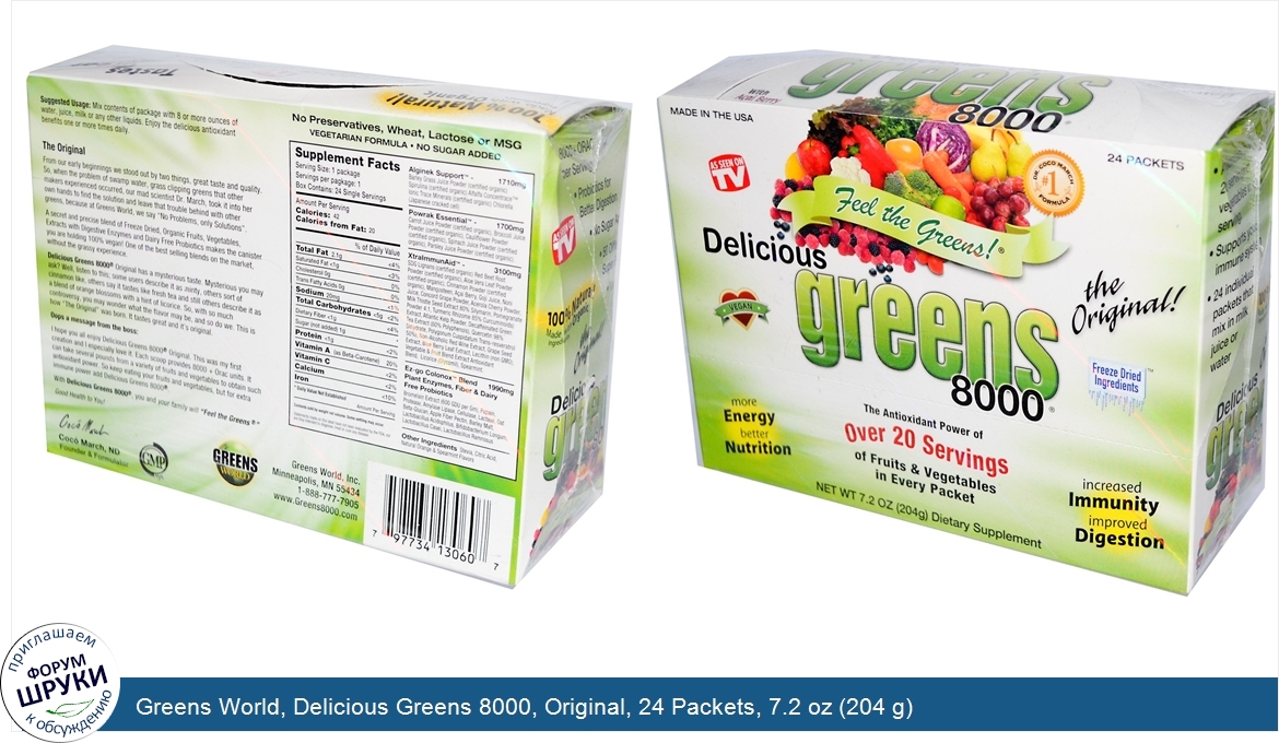 Друзья, если у вас есть отзыв/дополнение/комментарий/вопрос относительно Greens World, Delicious Greens 8000, Original, 24 Packets, 7.2 oz (204 g) - напишите его ответом в эту тему (это будет полезно всему сообществу в целом и вам в отдельности).