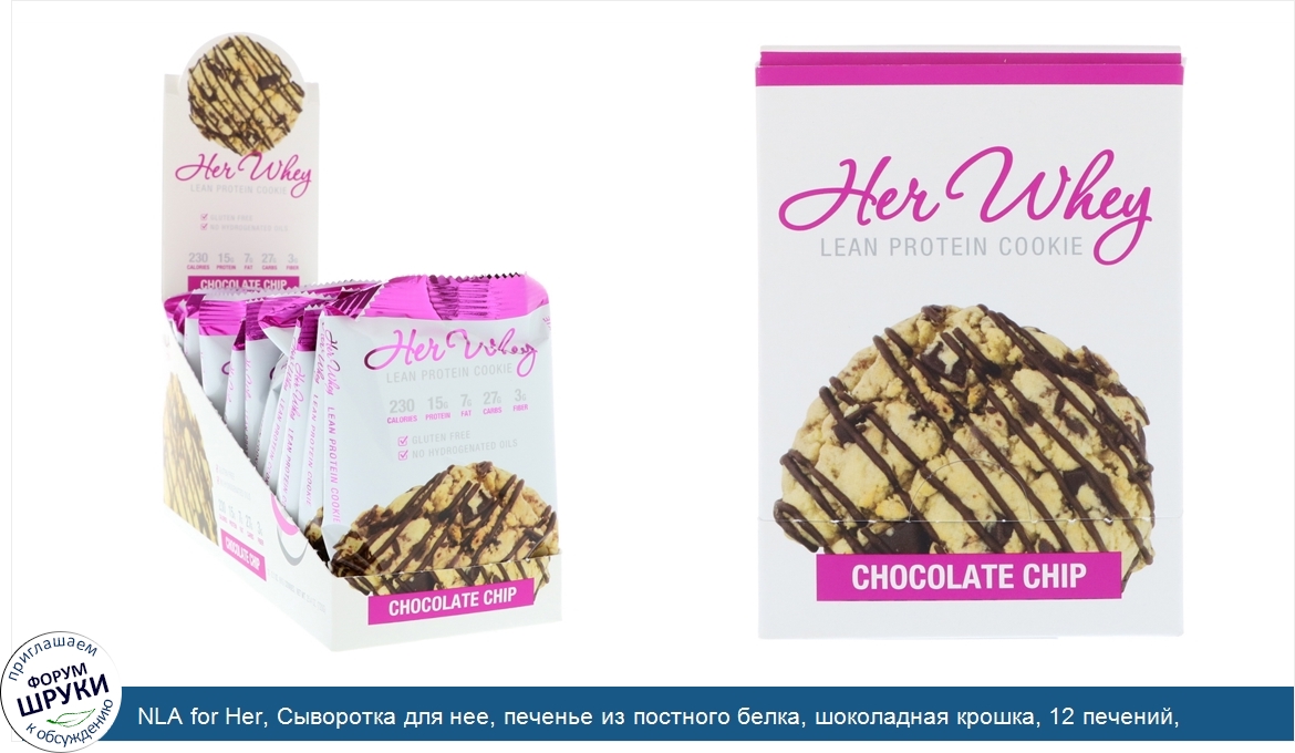 NLA for Her, Сыворотка для нее, печенье из постного белка, шоколадная крошка, 12 печений, по 60 г каждое