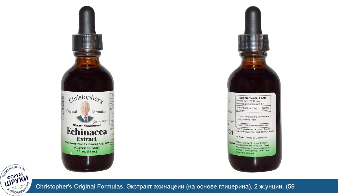 Друзья, если у вас есть отзыв/дополнение/комментарий/вопрос относительно Christopher's Original Formulas, Экстракт эхинацеии (на основе глицерина), 2 ж.унции, (59 мл) - напишите его ответом в эту тему (это будет полезно всему сообществу в целом и вам в отдельности).