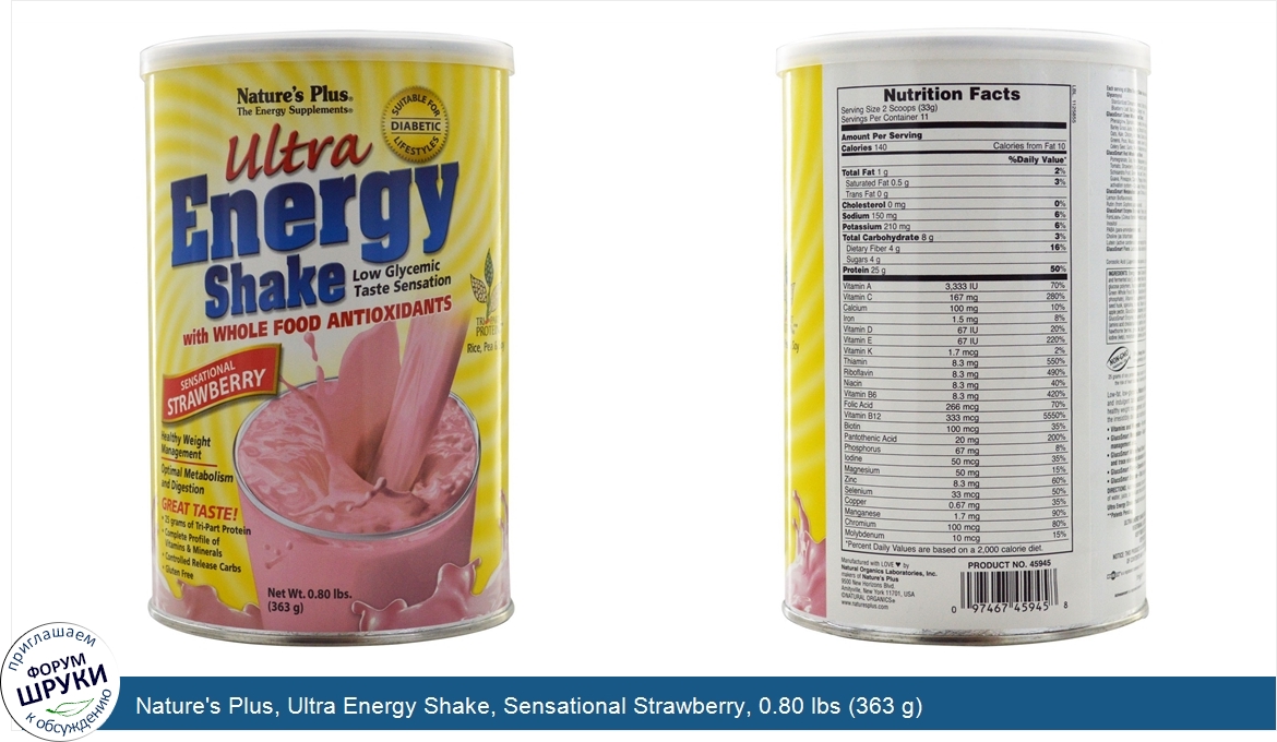 Друзья, если у вас есть отзыв/дополнение/комментарий/вопрос относительно Nature's Plus, Ultra Energy Shake, Sensational Strawberry, 0.80 lbs (363 g) - напишите его ответом в эту тему (это будет полезно всему сообществу в целом и вам в отдельности).