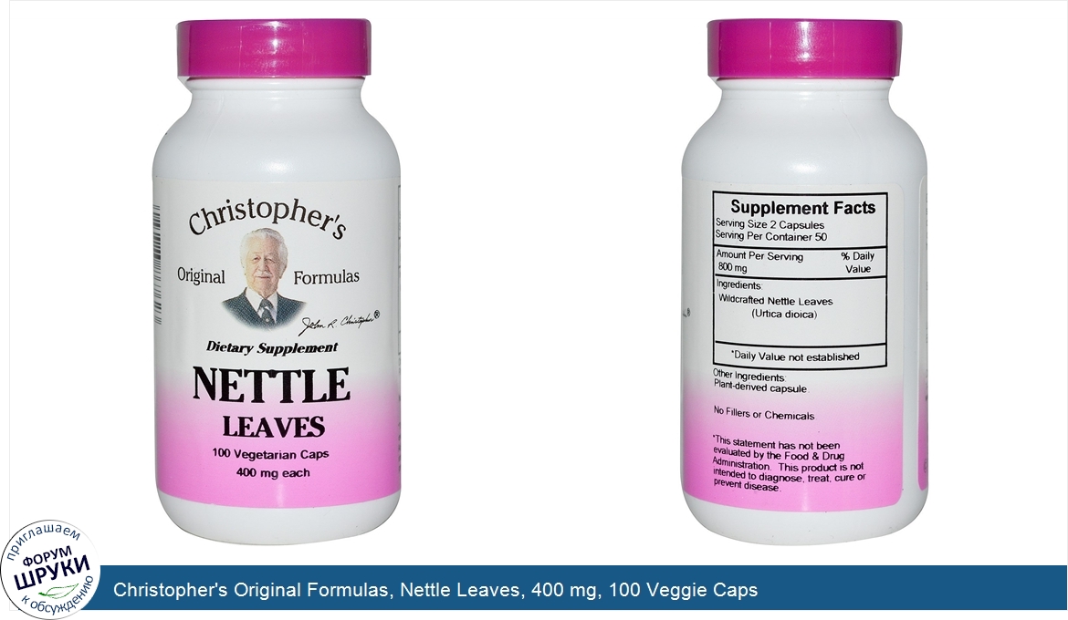 Друзья, если у вас есть отзыв/дополнение/комментарий/вопрос относительно Christopher's Original Formulas, Nettle Leaves, 400 mg, 100 Veggie Caps - напишите его ответом в эту тему (это будет полезно всему сообществу в целом и вам в отдельности).