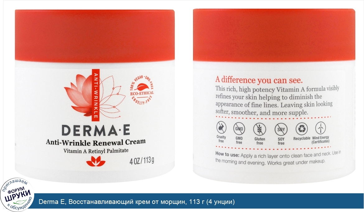 Друзья, если у вас есть отзыв/дополнение/комментарий/вопрос относительно Derma E, Восстанавливающий крем от морщин, 113 г (4 унции) - напишите его ответом в эту тему (это будет полезно всему сообществу в целом и вам в отдельности).