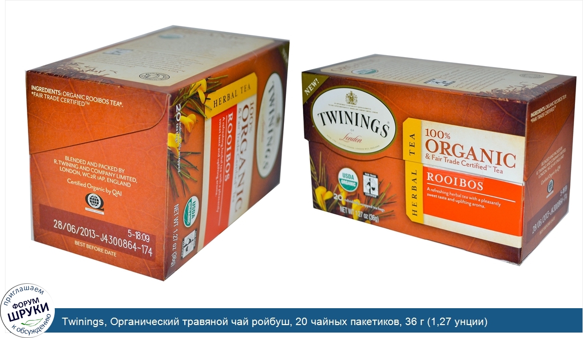 Друзья, если у вас есть отзыв/дополнение/комментарий/вопрос относительно Twinings, Органический травяной чай ройбуш, 20 чайных пакетиков, 36 г (1,27 унции) - напишите его ответом в эту тему (это будет полезно всему сообществу в целом и вам в отдельности).