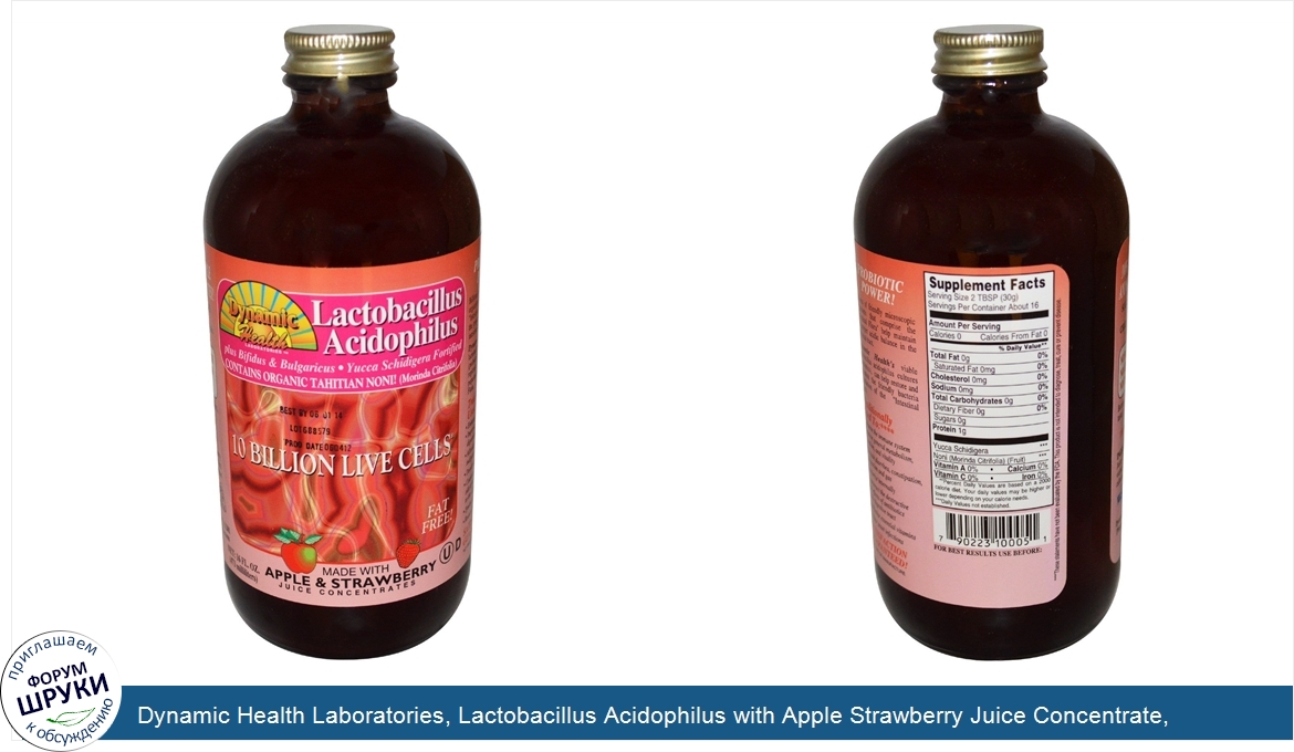 Dynamic Health Laboratories, Lactobacillus Acidophilus with Apple Strawberry Juice Concentrate, 16 fl oz (473 ml)