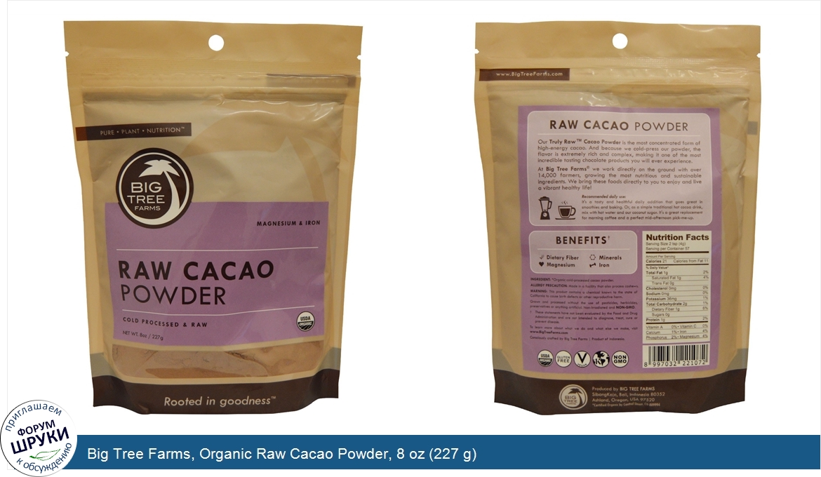 Друзья, если у вас есть отзыв/дополнение/комментарий/вопрос относительно Big Tree Farms, Organic Raw Cacao Powder, 8 oz (227 g) - напишите его ответом в эту тему (это будет полезно всему сообществу в целом и вам в отдельности).