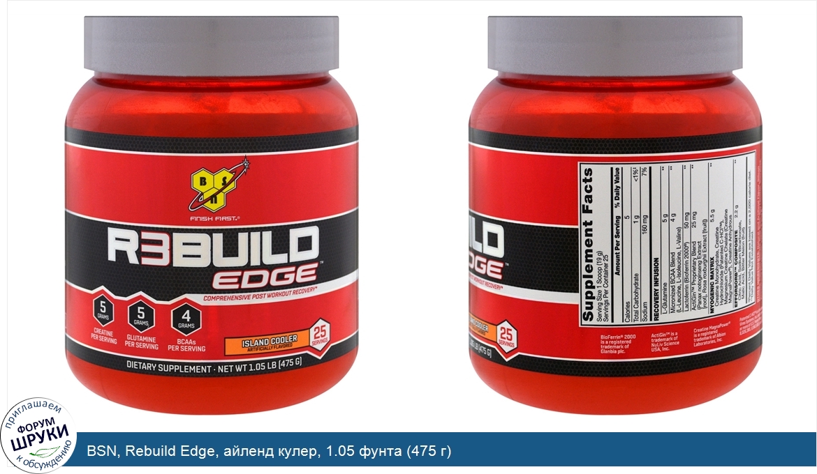 Друзья, если у вас есть отзыв/дополнение/комментарий/вопрос относительно BSN, Rebuild Edge, айленд кулер, 1.05 фунта (475 г) - напишите его ответом в эту тему (это будет полезно всему сообществу в целом и вам в отдельности).