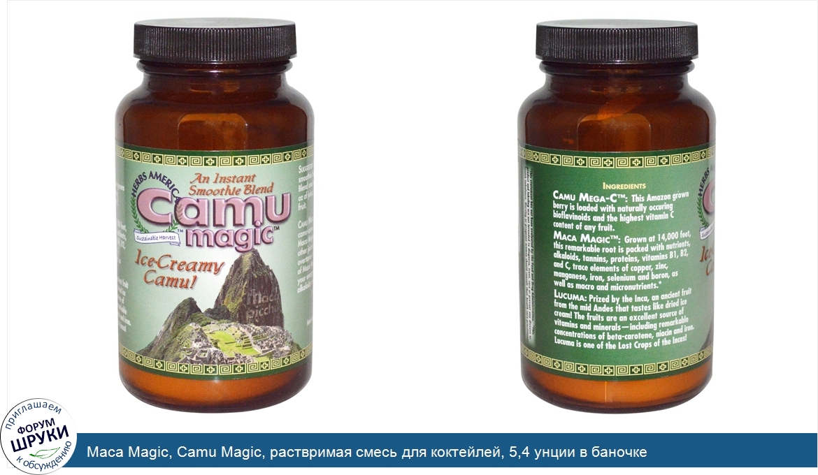Друзья, если у вас есть отзыв/дополнение/комментарий/вопрос относительно Maca Magic, Camu Magic, раствримая смесь для коктейлей, 5,4 унции в баночке - напишите его ответом в эту тему (это будет полезно всему сообществу в целом и вам в отдельности).