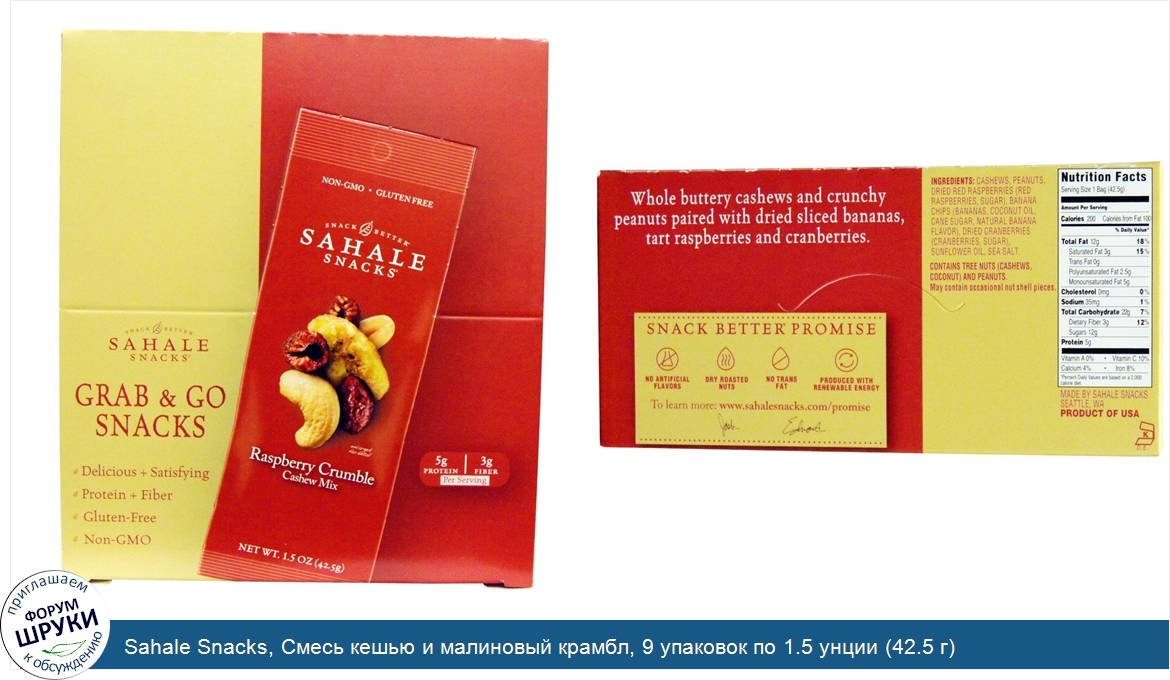 ru Sahale Snacks, Смесь кешью и малиновый крамбл, 9 упаковок по 1.5 унции (42.5 г)