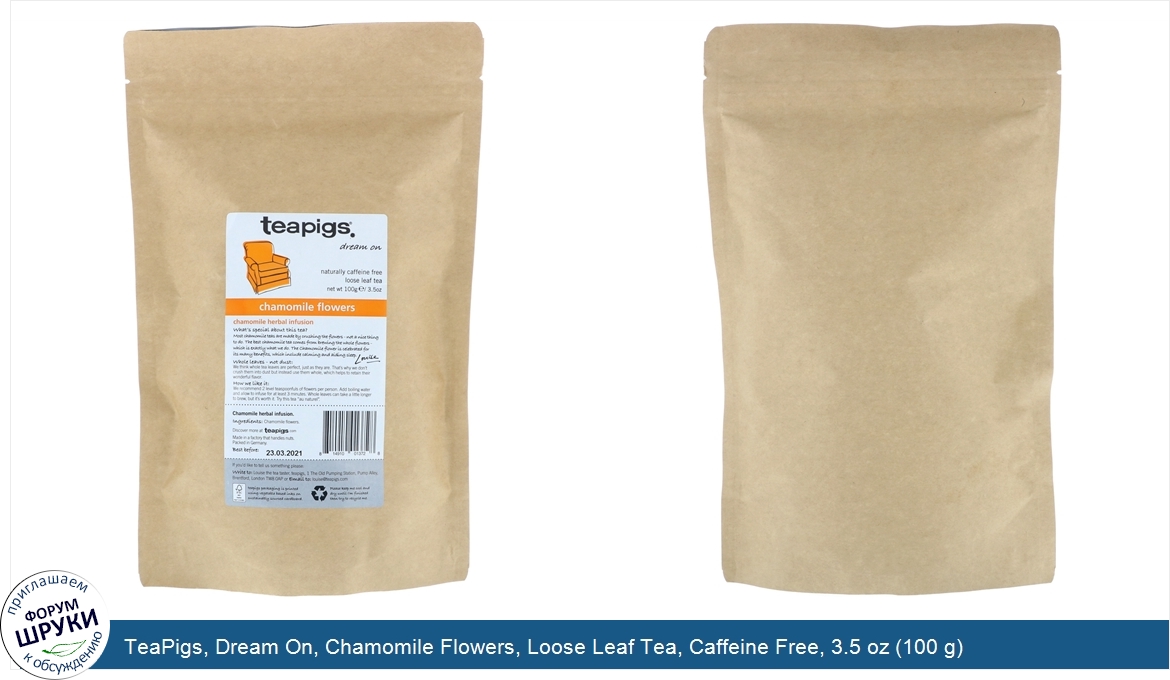 Друзья, если у вас есть отзыв/дополнение/комментарий/вопрос относительно TeaPigs, Dream On, Chamomile Flowers, Loose Leaf Tea, Caffeine Free, 3.5 oz (100 g) - напишите его ответом в эту тему (это будет полезно всему сообществу в целом и вам в отдельности).