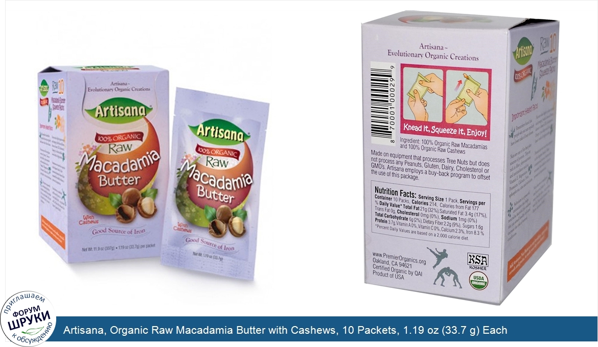 Друзья, если у вас есть отзыв/дополнение/комментарий/вопрос относительно Artisana, Organic Raw Macadamia Butter with Cashews, 10 Packets, 1.19 oz (33.7 g) Each - напишите его ответом в эту тему (это будет полезно всему сообществу в целом и вам в отдельности).
