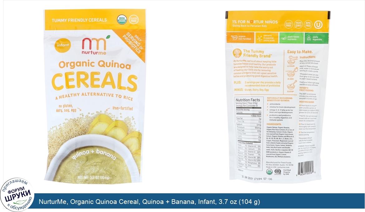 Друзья, если у вас есть отзыв/дополнение/комментарий/вопрос относительно NurturMe, Organic Quinoa Cereal, Quinoa + Banana, Infant, 3.7 oz (104 g) - напишите его ответом в эту тему (это будет полезно всему сообществу в целом и вам в отдельности).