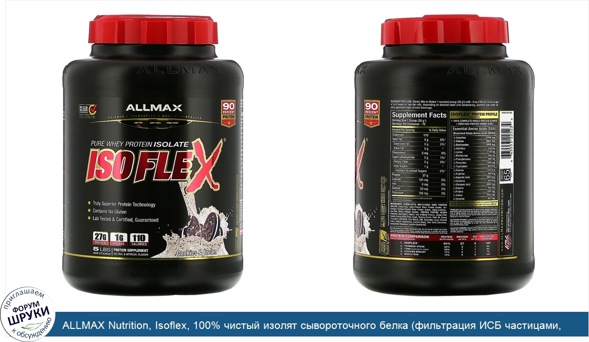 Друзья, если у вас есть отзыв/дополнение/комментарий/вопрос относительно ALLMAX Nutrition, Isoflex, 100% чистый изолят сывороточного белка (фильтрация ИСБ частицами, заряженными ионами), со вкусом печенья и сливок, 2,27кг (5фунтов) - напишите его ответом в эту тему (это будет полезно всему сообществу в целом и вам в отдельности).