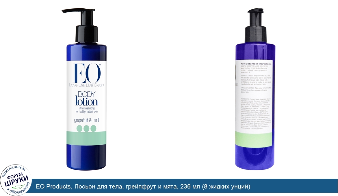 Друзья, если у вас есть отзыв/дополнение/комментарий/вопрос относительно EO Products, Лосьон для тела, грейпфрут и мята, 236 мл (8 жидких унций) - напишите его ответом в эту тему (это будет полезно всему сообществу в целом и вам в отдельности).