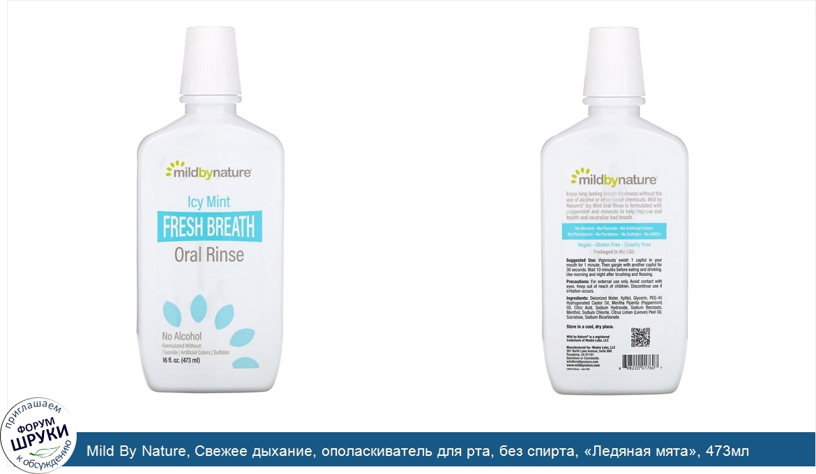 Друзья, если у вас есть отзыв/дополнение/комментарий/вопрос относительно Mild By Nature, Свежее дыхание, ополаскиватель для рта, без спирта, «Ледяная мята», 473мл (16жидк.унций) - напишите его ответом в эту тему (это будет полезно всему сообществу в целом и вам в отдельности).