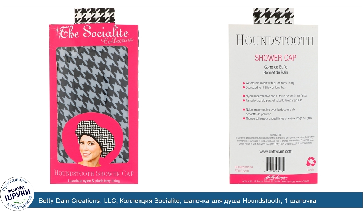 Друзья, если у вас есть отзыв/дополнение/комментарий/вопрос относительно Betty Dain Creations, LLC, Коллекция Socialite, шапочка для душа Houndstooth, 1 шапочка - напишите его ответом в эту тему (это будет полезно всему сообществу в целом и вам в отдельности).