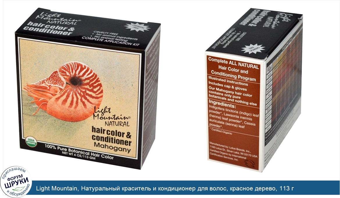 Light Mountain, Натуральный краситель и кондиционер для волос, красное дерево, 113 г