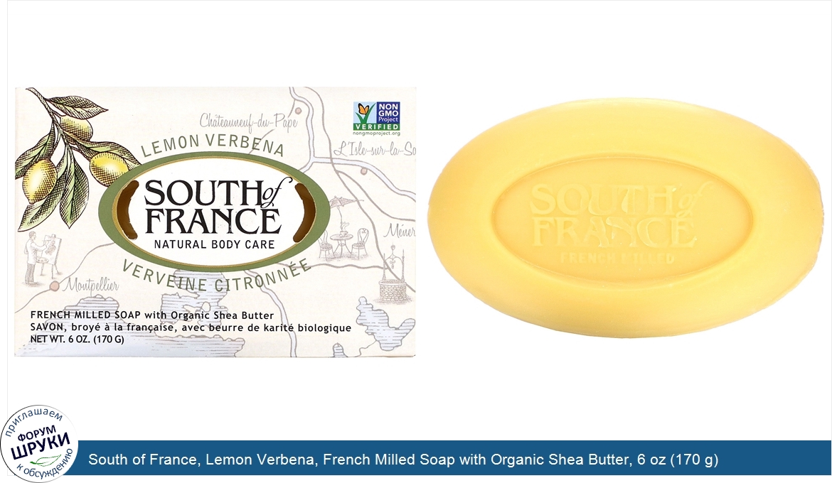 Друзья, если у вас есть отзыв/дополнение/комментарий/вопрос относительно South of France, Lemon Verbena, French Milled Soap with Organic Shea Butter, 6 oz (170 g) - напишите его ответом в эту тему (это будет полезно всему сообществу в целом и вам в отдельности).