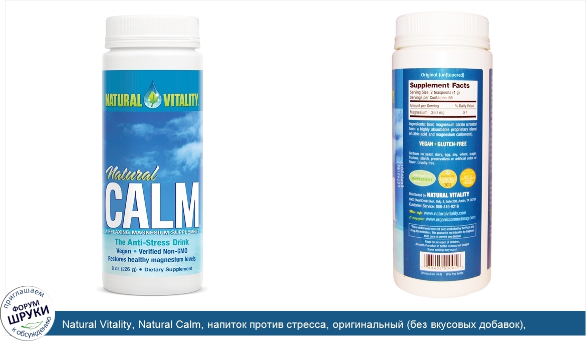 Друзья, если у вас есть отзыв/дополнение/комментарий/вопрос относительно Natural Vitality, Natural Calm, напиток против стресса, оригинальный (без вкусовых добавок), 226 г - напишите его ответом в эту тему (это будет полезно всему сообществу в целом и вам в отдельности).