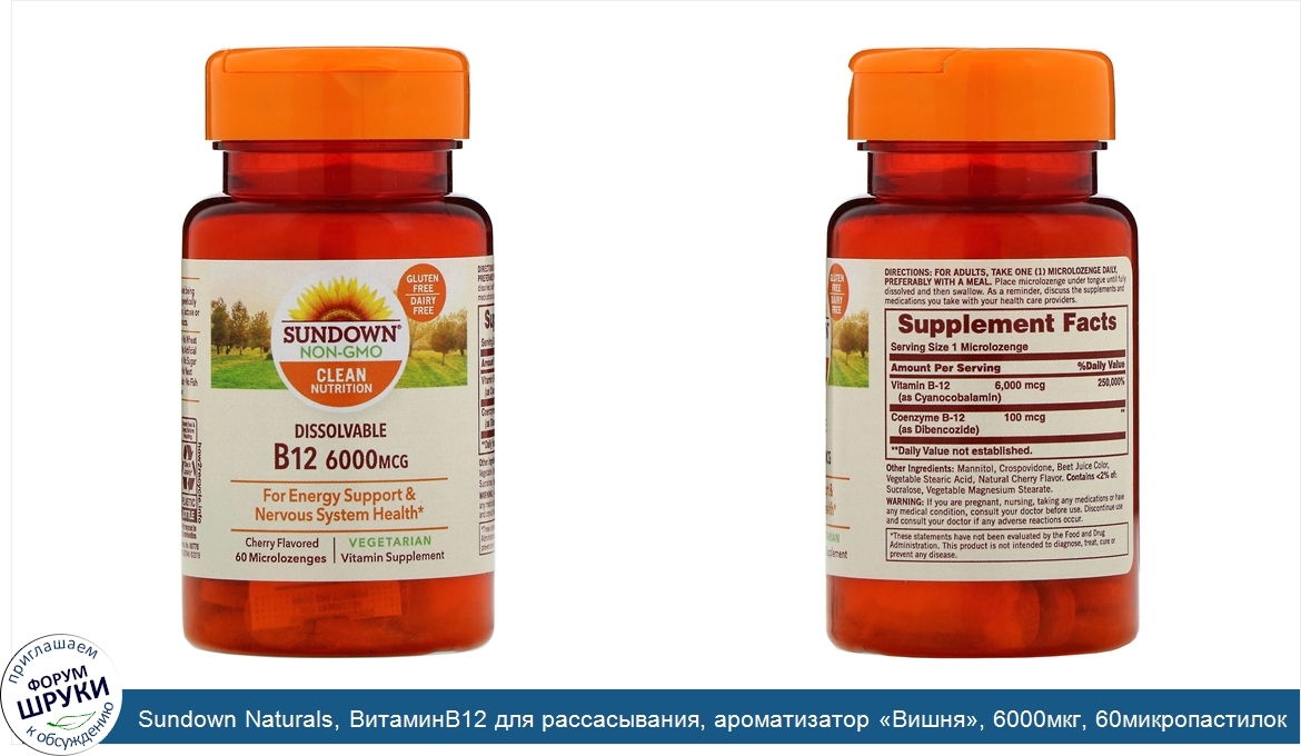 Друзья, если у вас есть отзыв/дополнение/комментарий/вопрос относительно Sundown Naturals, ВитаминB12 для рассасывания, ароматизатор «Вишня», 6000мкг, 60микропастилок для рассасывания - напишите его ответом в эту тему (это будет полезно всему сообществу в целом и вам в отдельности).