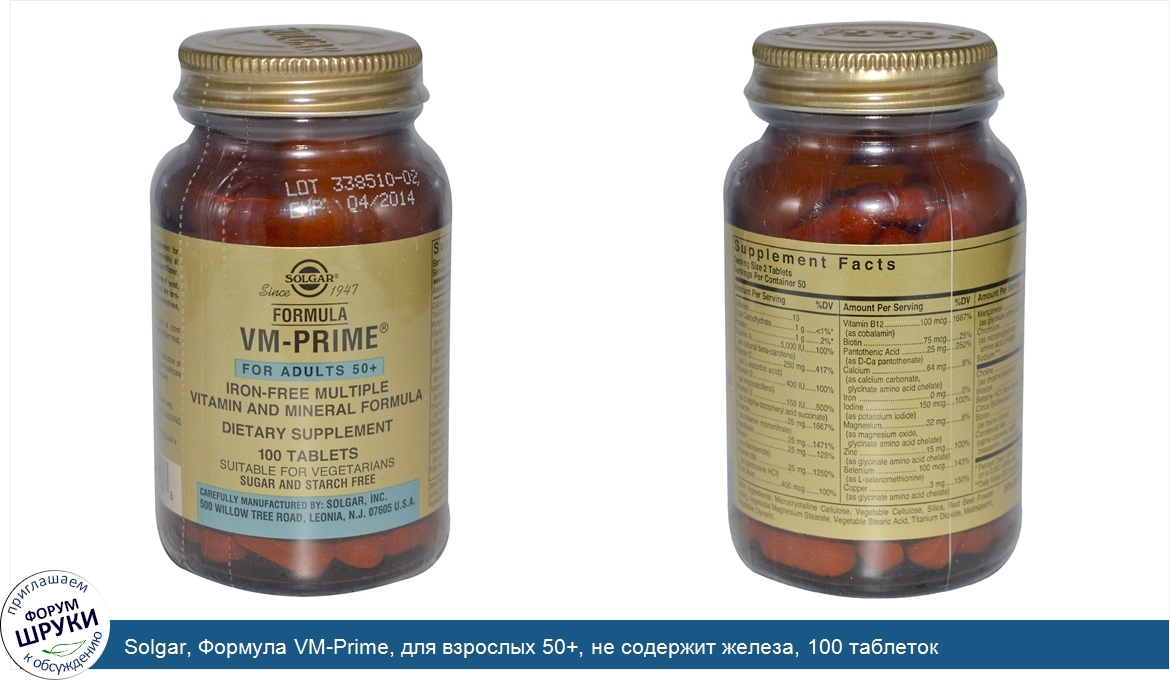 Друзья, если у вас есть отзыв/дополнение/комментарий/вопрос относительно Solgar, Формула VM-Prime, для взрослых 50+, не содержит железа, 100 таблеток - напишите его ответом в эту тему (это будет полезно всему сообществу в целом и вам в отдельности).