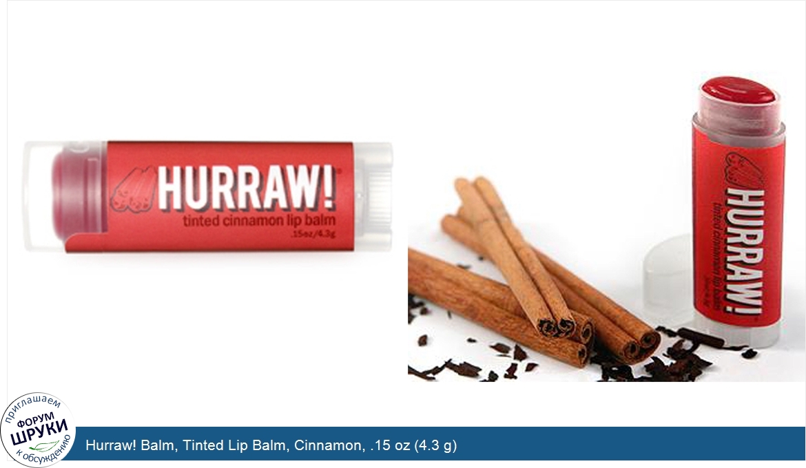 Друзья, если у вас есть отзыв/дополнение/комментарий/вопрос относительно Hurraw! Balm, Tinted Lip Balm, Cinnamon, .15 oz (4.3 g) - напишите его ответом в эту тему (это будет полезно всему сообществу в целом и вам в отдельности).