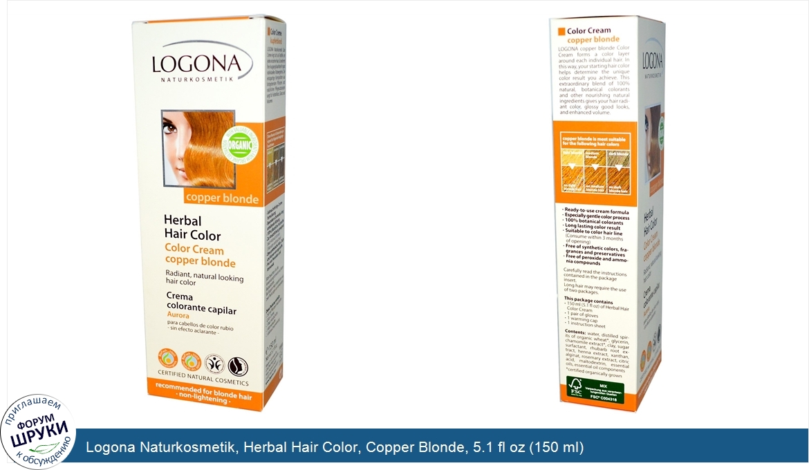 Друзья, если у вас есть отзыв/дополнение/комментарий/вопрос относительно Logona Naturkosmetik, Herbal Hair Color, Copper Blonde, 5.1 fl oz (150 ml) - напишите его ответом в эту тему (это будет полезно всему сообществу в целом и вам в отдельности).