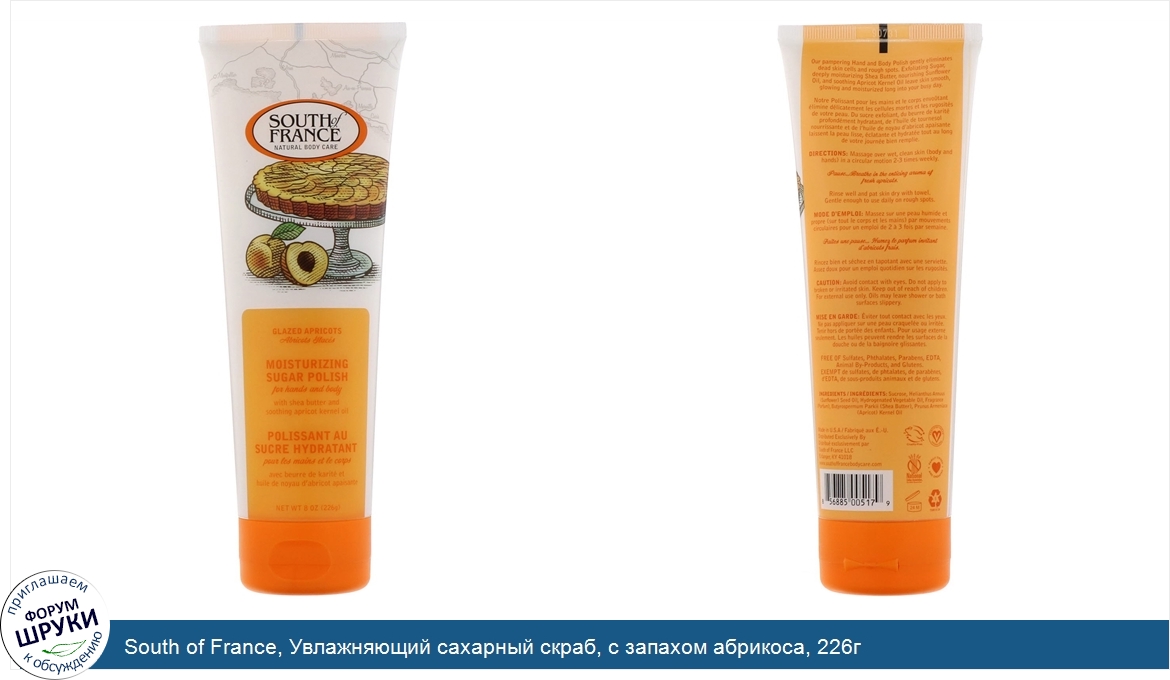 South of France, Увлажняющий сахарный скраб, с запахом абрикоса, 226г