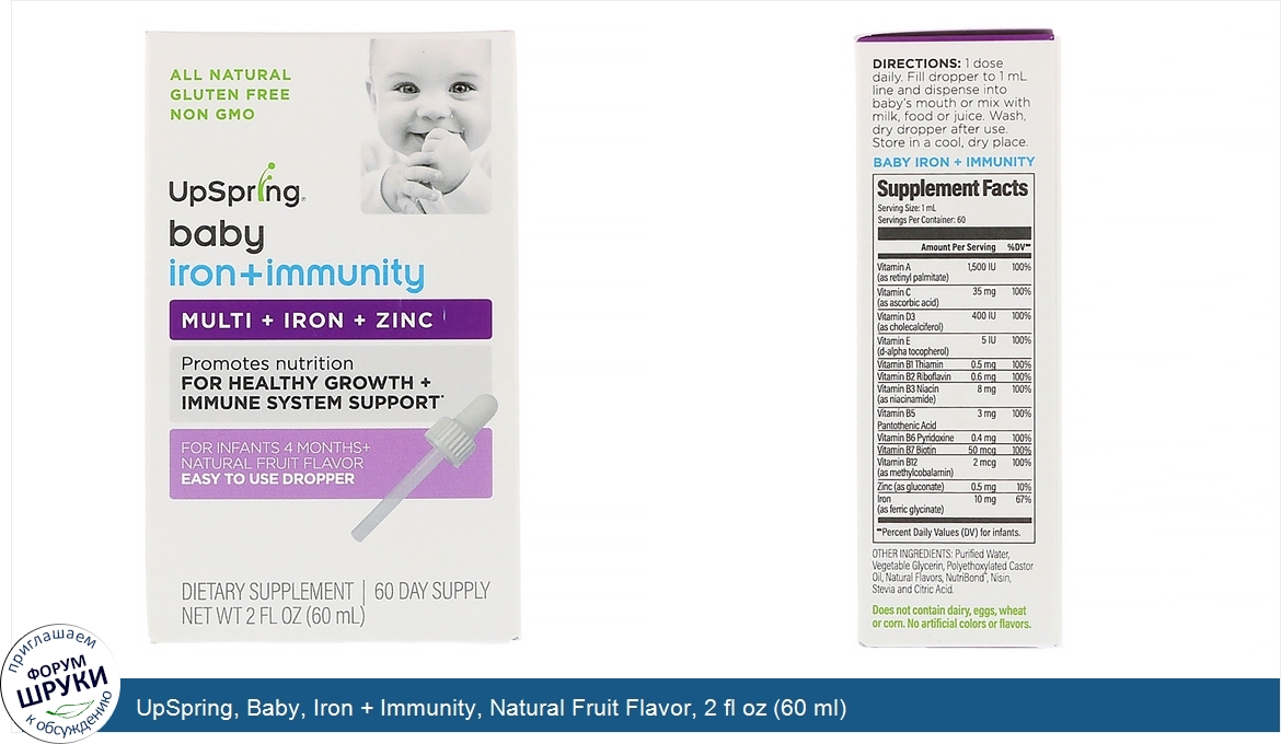 UpSpring, Baby, Iron + Immunity, Natural Fruit Flavor, 2 fl oz (60 ml)