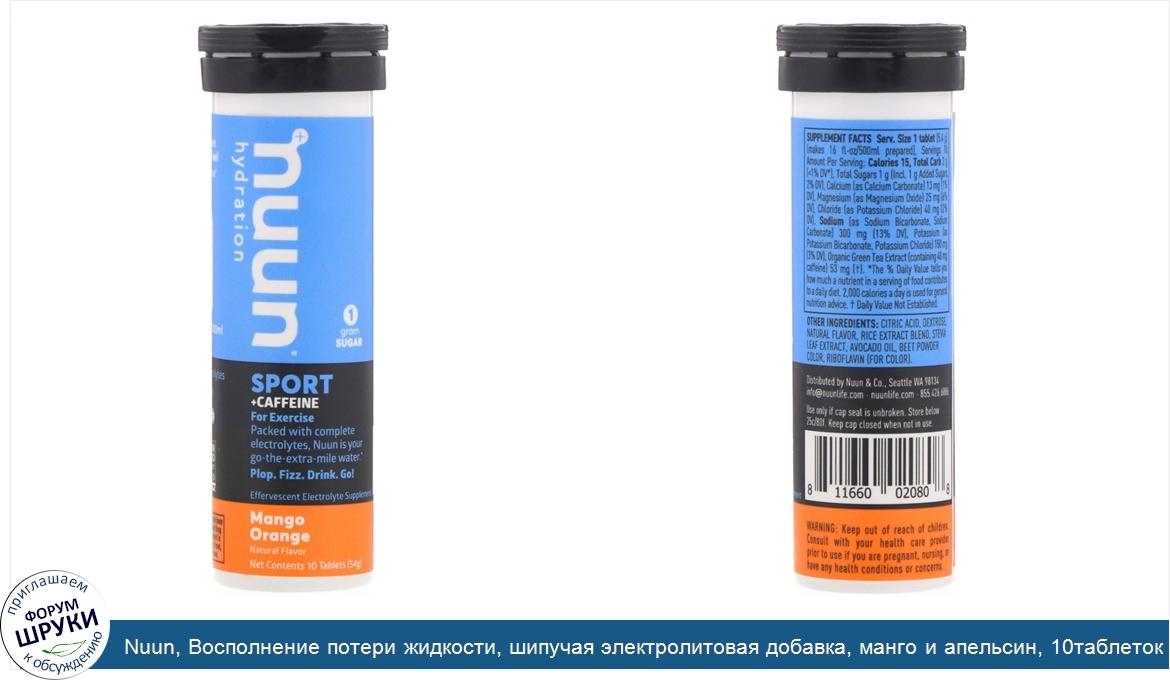 Друзья, если у вас есть отзыв/дополнение/комментарий/вопрос относительно Nuun, Восполнение потери жидкости, шипучая электролитовая добавка, манго и апельсин, 10таблеток - напишите его ответом в эту тему (это будет полезно всему сообществу в целом и вам в отдельности).