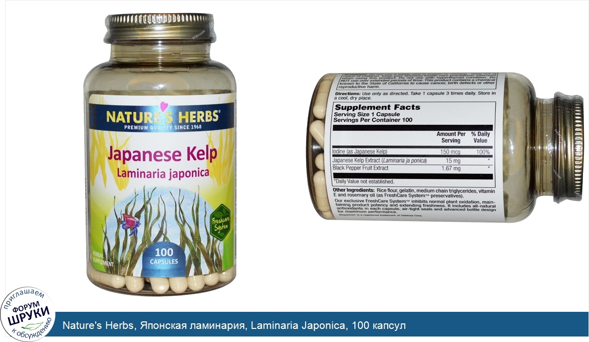 Друзья, если у вас есть отзыв/дополнение/комментарий/вопрос относительно Nature's Herbs, Японская ламинария, Laminaria Japonica, 100 капсул - напишите его ответом в эту тему (это будет полезно всему сообществу в целом и вам в отдельности).