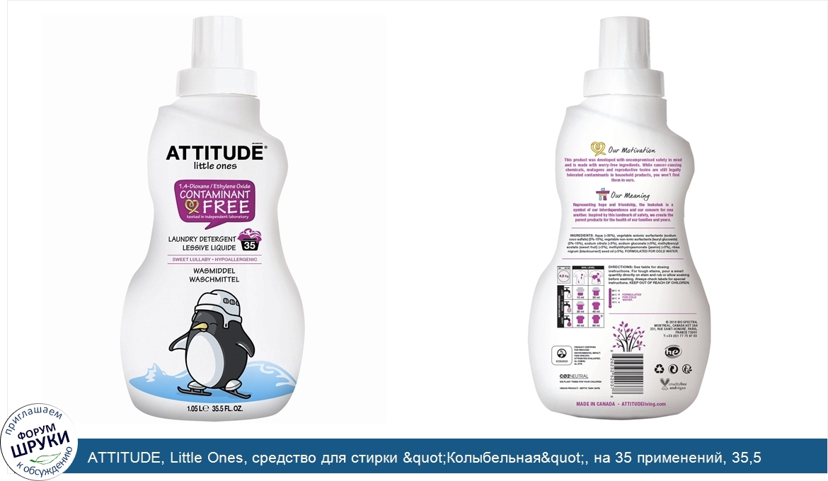 Друзья, если у вас есть отзыв/дополнение/комментарий/вопрос относительно ATTITUDE, Little Ones, средство для стирки "Колыбельная", на 35 применений, 35,5 жидкие унции (1,05 л) - напишите его ответом в эту тему (это будет полезно всему сообществу в целом и вам в отдельности).