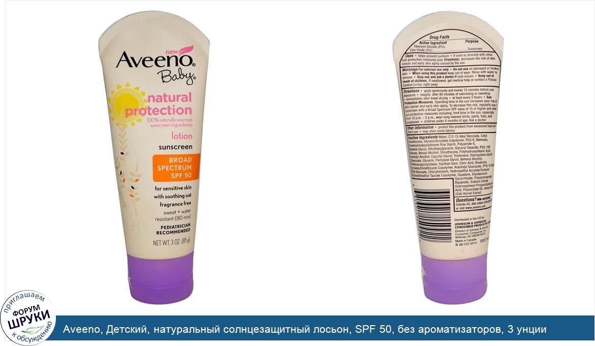 Друзья, если у вас есть отзыв/дополнение/комментарий/вопрос относительно Aveeno, Детский, натуральный солнцезащитный лосьон, SPF 50, без ароматизаторов, 3 унции (85 г) - напишите его ответом в эту тему (это будет полезно всему сообществу в целом и вам в отдельности).