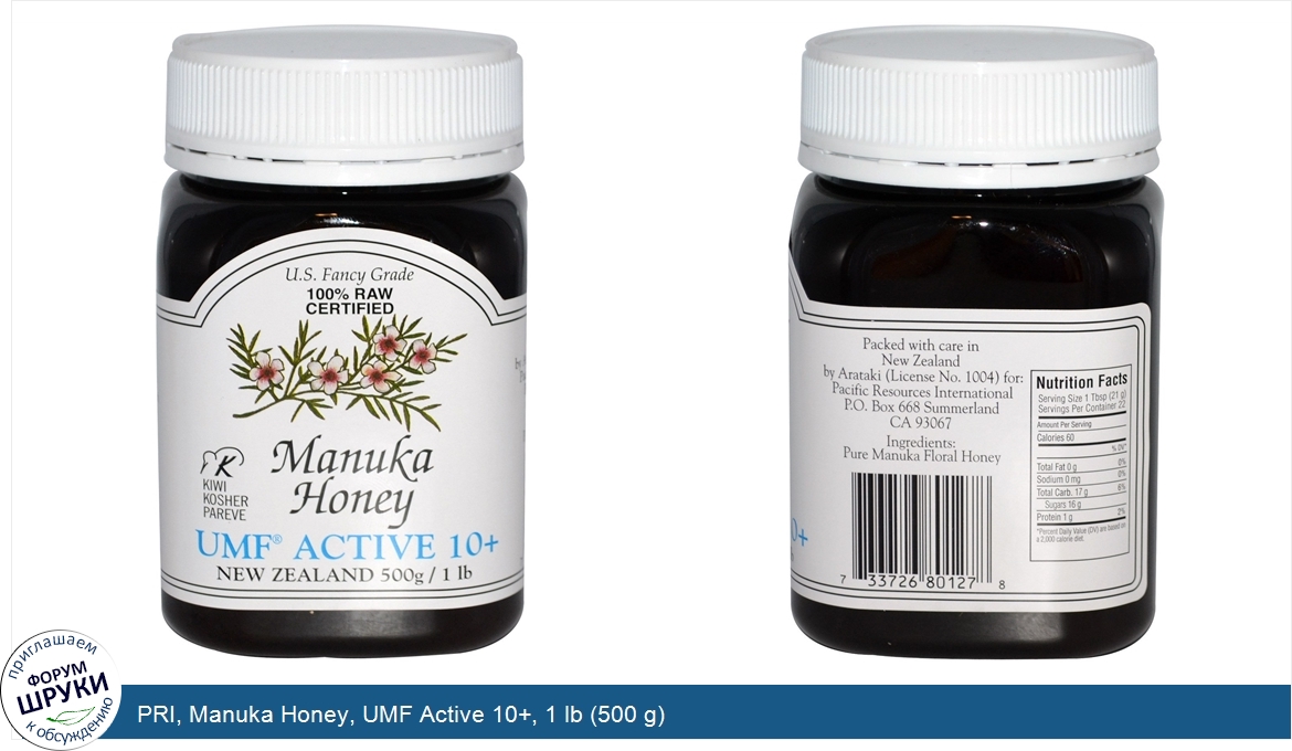 ru PRI, Manuka Honey, UMF Active 10+, 1 lb (500 g)