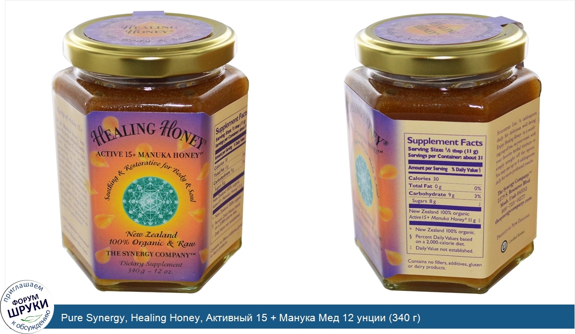 Pure Synergy, Healing Honey, Активный 15 + Манука Мед 12 унции (340 г)