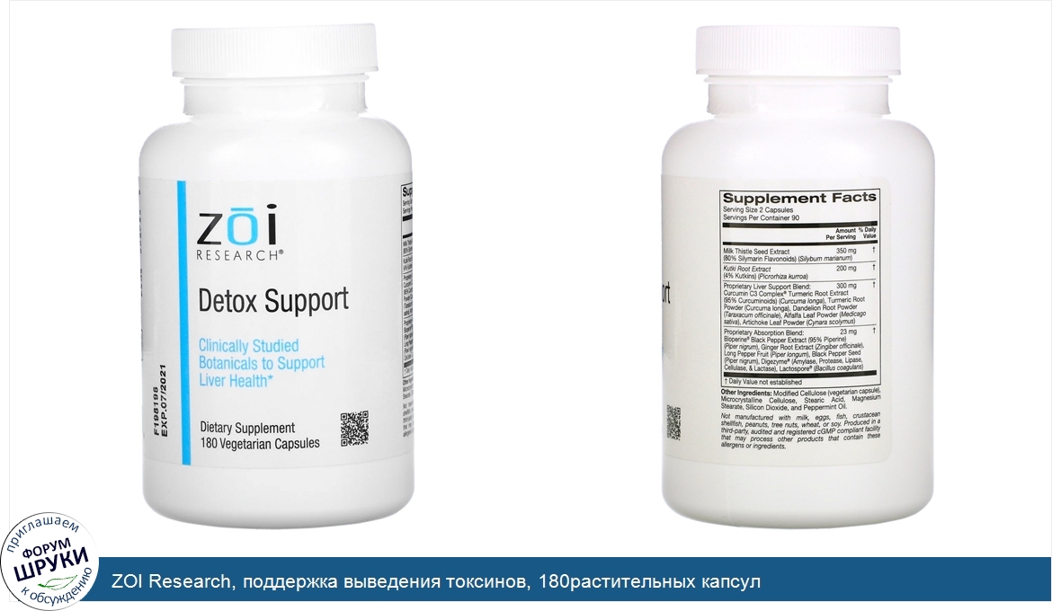 ZOI Research, поддержка выведения токсинов, 180растительных капсул