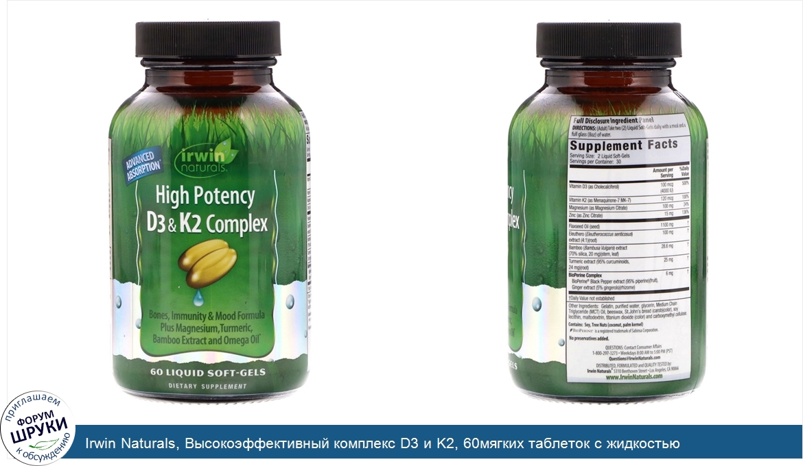 ru Irwin Naturals, Высокоэффективный комплекс D3 и K2, 60мягких таблеток с жидкостью