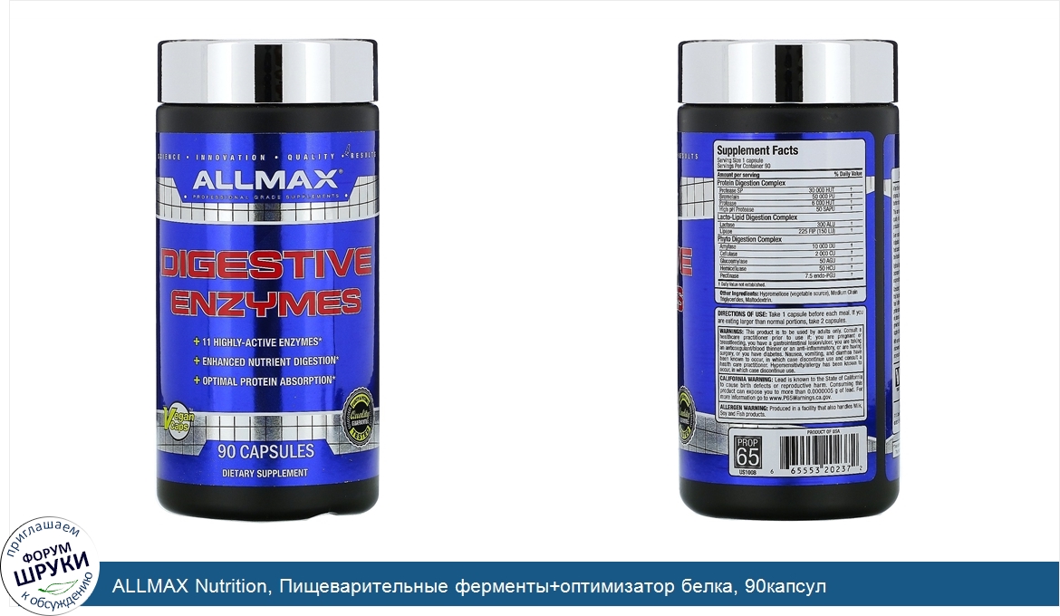 ALLMAX Nutrition, Пищеварительные ферменты+оптимизатор белка, 90капсул