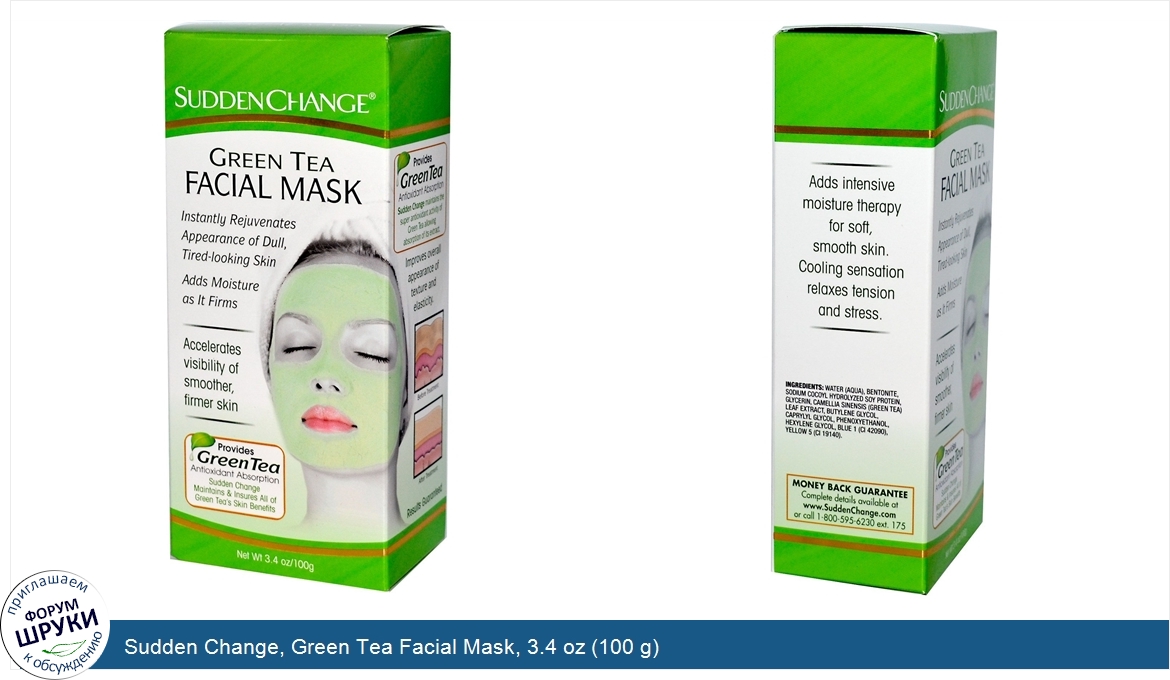 Друзья, если у вас есть отзыв/дополнение/комментарий/вопрос относительно Sudden Change, Green Tea Facial Mask, 3.4 oz (100 g) - напишите его ответом в эту тему (это будет полезно всему сообществу в целом и вам в отдельности).