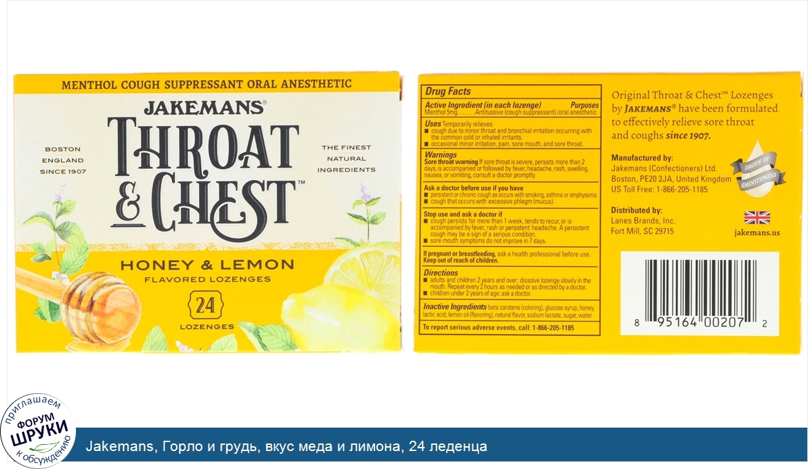 Друзья, если у вас есть отзыв/дополнение/комментарий/вопрос относительно Jakemans, Горло и грудь, вкус меда и лимона, 24 леденца - напишите его ответом в эту тему (это будет полезно всему сообществу в целом и вам в отдельности).