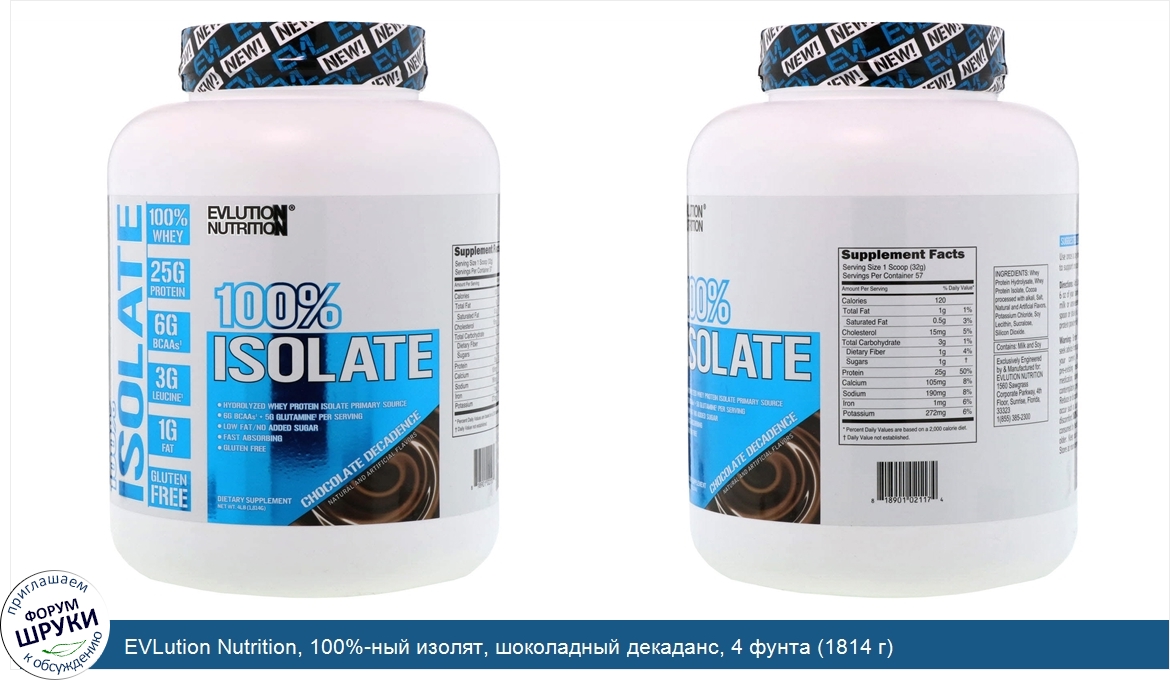Друзья, если у вас есть отзыв/дополнение/комментарий/вопрос относительно EVLution Nutrition, 100%-ный изолят, шоколадный декаданс, 4 фунта (1814 г) - напишите его ответом в эту тему (это будет полезно всему сообществу в целом и вам в отдельности).
