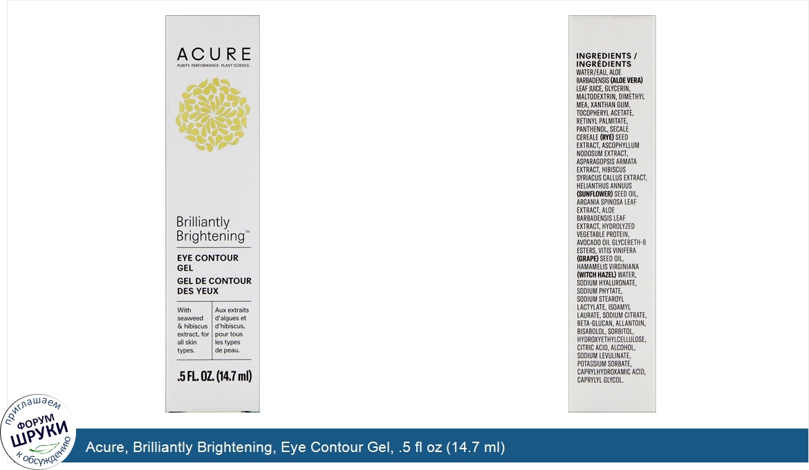 Acure, Brilliantly Brightening, Eye Contour Gel, .5 fl oz (14.7 ml)