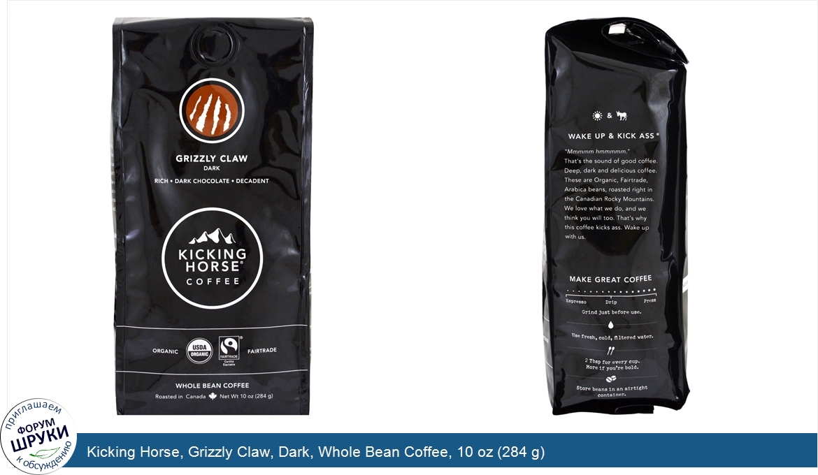 Друзья, если у вас есть отзыв/дополнение/комментарий/вопрос относительно Kicking Horse, Grizzly Claw, Dark, Whole Bean Coffee, 10 oz (284 g) - напишите его ответом в эту тему (это будет полезно всему сообществу в целом и вам в отдельности).