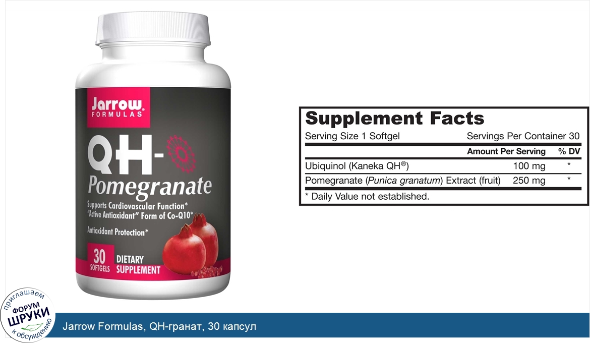 Поддерживает работу сердечно-сосудистой системы. Активная антиоксидантная форма коэнзима Q10. Антиоксидантная защита. Пищевая добавка. Добавка QH-Гранат от Jarrow Formulas объединяет два главных активных вещества...