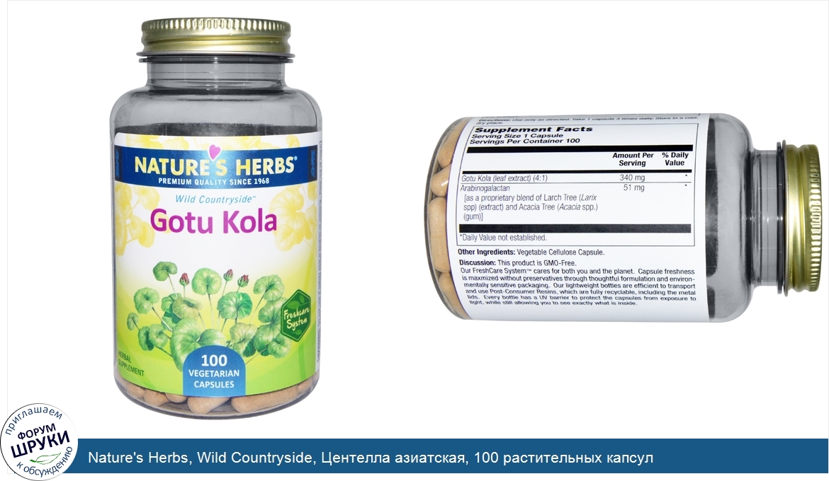 Nature's Herbs, Wild Countryside, Центелла азиатская, 100 растительных капсул